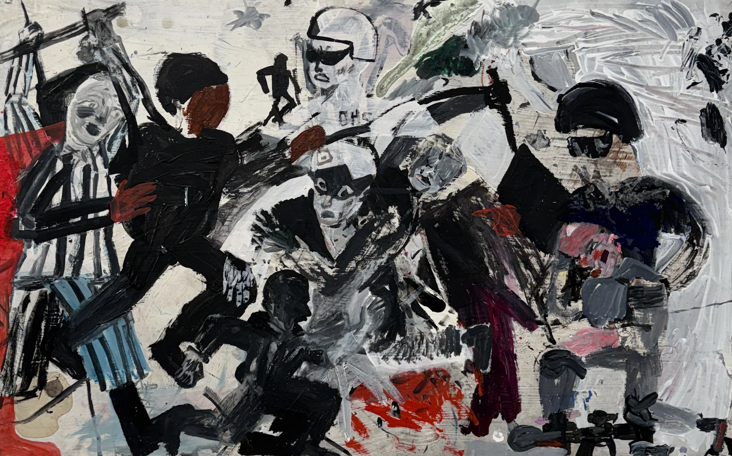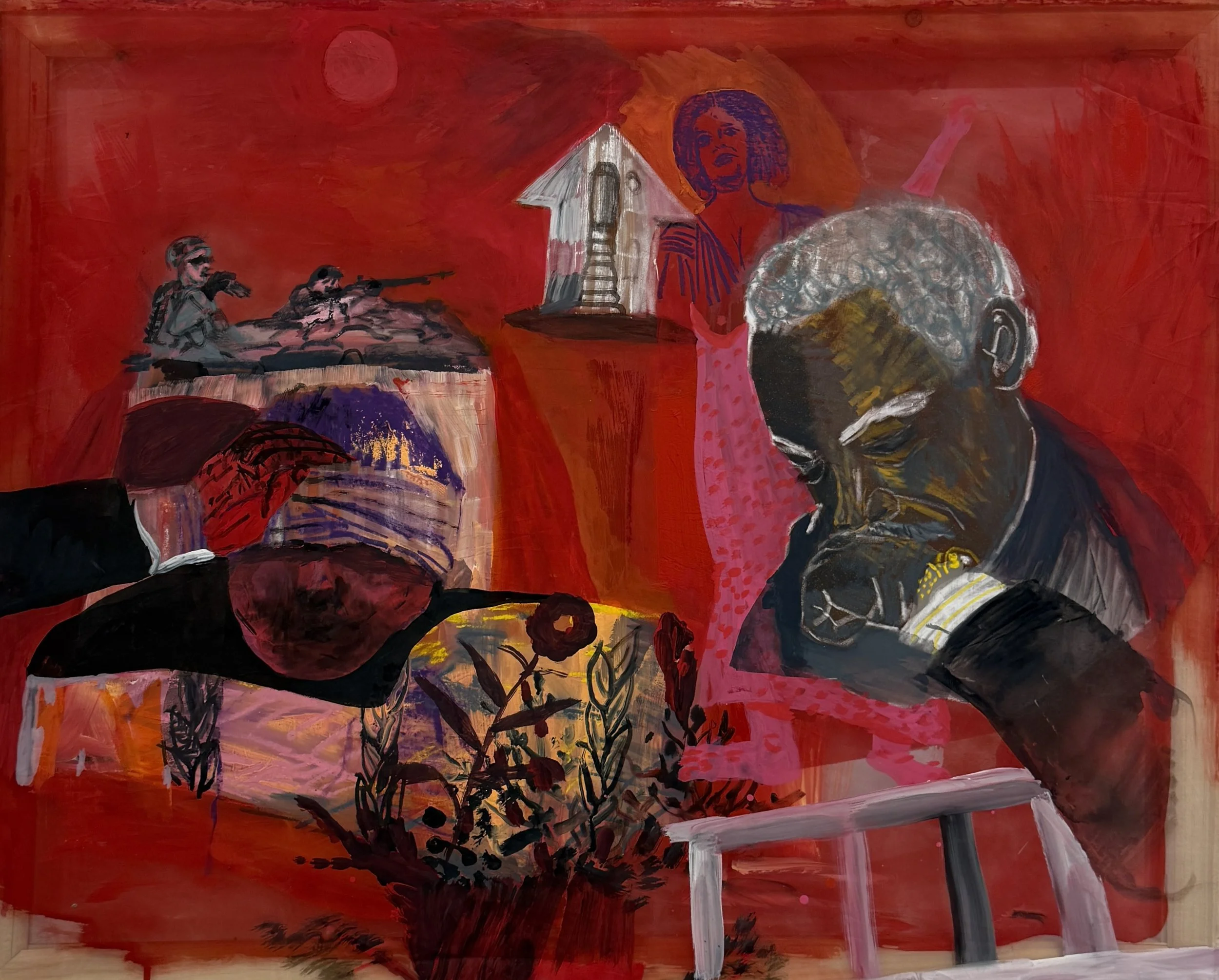Gregory Rick's paintings reflect on the tradition of resistance, confronting personal trauma, and the absurdity of violence, while Shirin Towfiq’s work turns to the Iranian diaspora and the experience of being a second-generation refugee searching for a relation to an inaccessible homeland. Together, the exhibition asks how histories of conflict endure in the body, in memory, and through what is inherited.